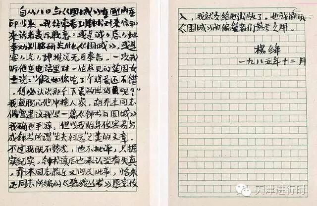 杨绛的第一篇散文《收脚印》(1933)和第一篇小说《璐璐,不用愁!》(1934),都是在朱自清的推荐下,发表在天津《大公报·文艺副刊》上,1936年《璐璐》还被林徽因选入《大公报丛刊小说选》。杨绛与钱钟书漫长的一生中,遇到过几位重要伙伴,偏巧他们又都是天津人。