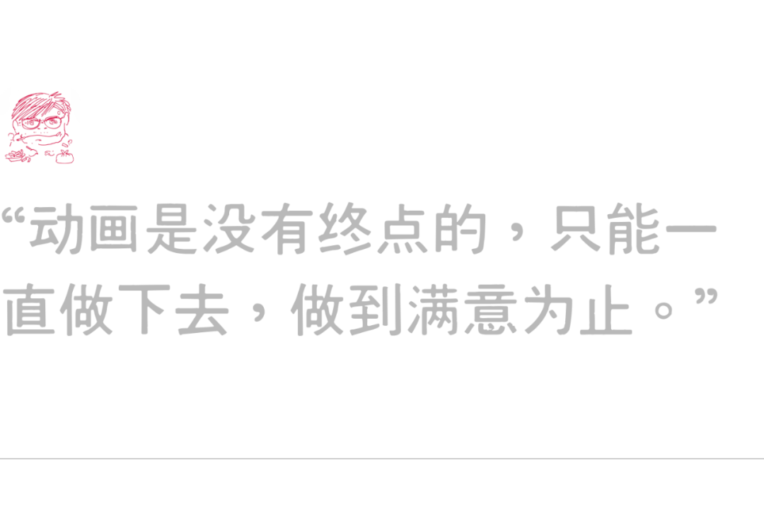 “说赌上自己的人生未免有些夸张,可既然选择了动画师这个职业,就应该做些有价值的事。此时此刻,我正在探索自己该走的路。”