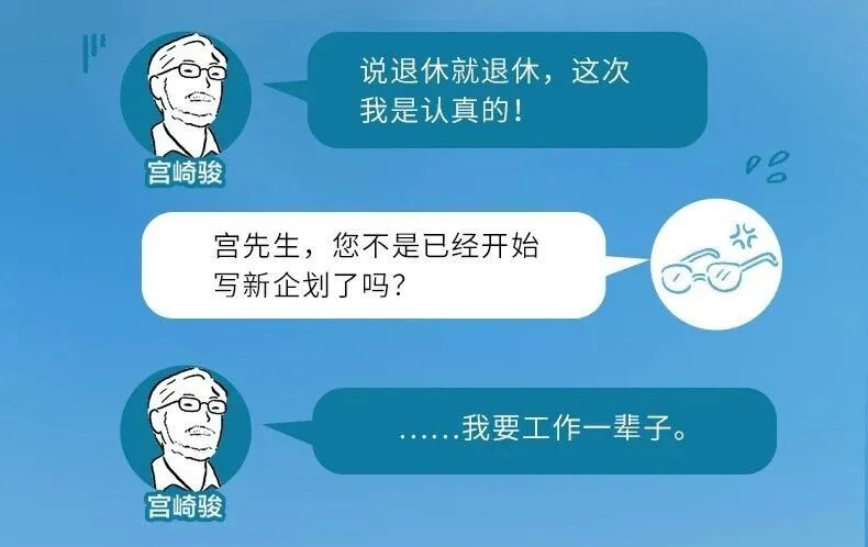 人们甚至开始调侃,每当宫崎骏说“再也不干了”,其实意味着一部新的作品正在酝酿之中。