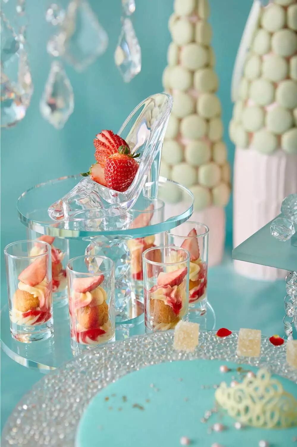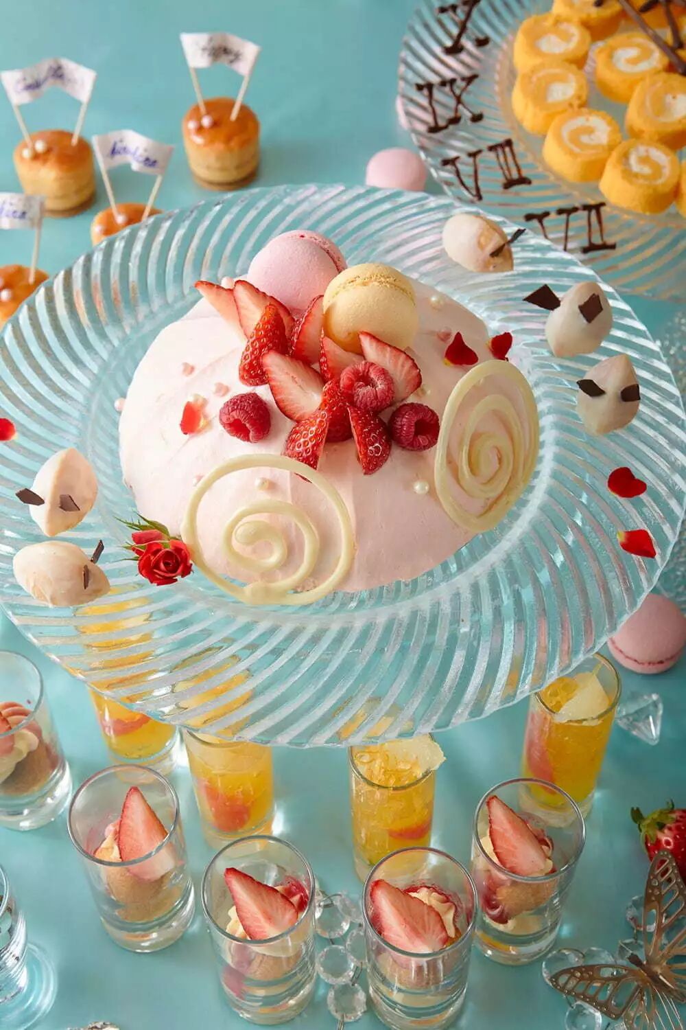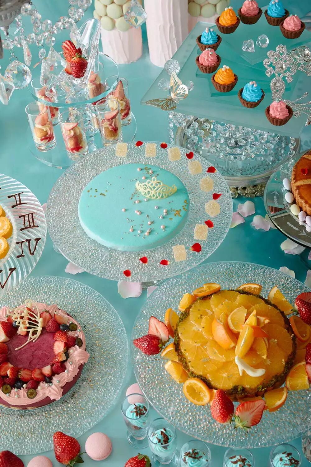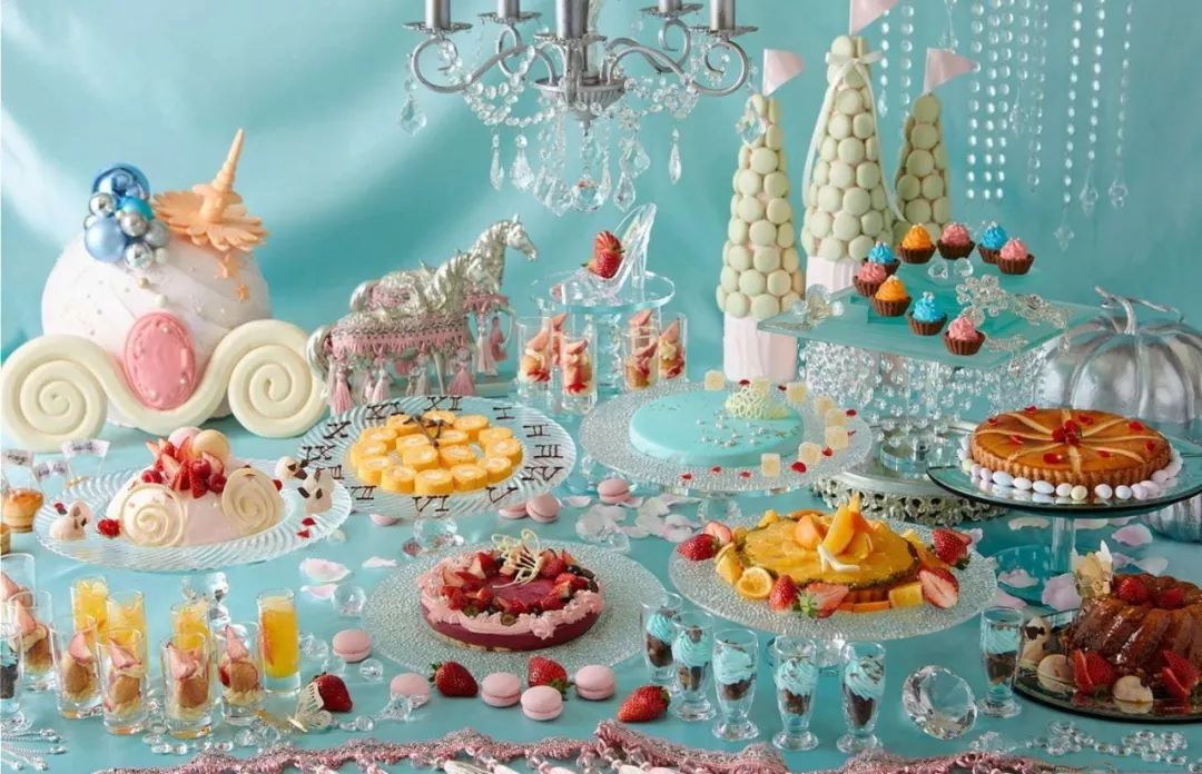 「玻璃王国的甜点自助」是以童话《灰姑娘》为主题的甜点自助,淡蓝色的背景和玻璃杯盘都是满满的童话气息,有马车形状的蛋糕、香草慕斯蛋糕等共计30多种,如同进入了华丽的舞会一般,享受甜点的同时还可以拍几张可爱的照片哦。