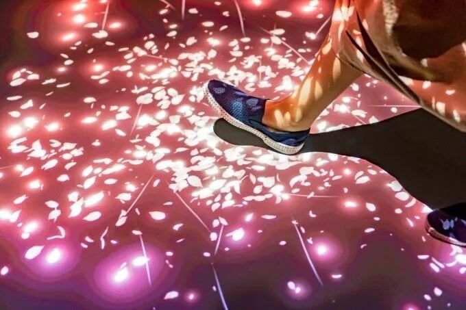 当水母浮游的神秘海底世界染上樱花颜色会变成什么样子?隅田水族馆的春季限定活动「樱与水母」将在万华镜隧道开展。长约50米,装饰有5000枚镜子的隧道中,用光影制作出樱花飞舞的幻想空间。映像在表现融雪的「水景」和表现春来的「樱景」间来回切换,两种映像都可以根据人的动作进行改变,踩在樱花上樱花会随之飘散,触碰水面则会有波纹,就像是真的走在樱花中水面上,也是非常有趣了。