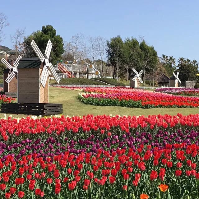 在郁金香绽放的季节展开的活动,有220多种,19万株郁金香在广阔的公园中绽放。周末时还会举办体验荷兰服饰的活动。在公园中,可以眺望蔚蓝的海洋,一览大阪湾,非常适合家人出游。