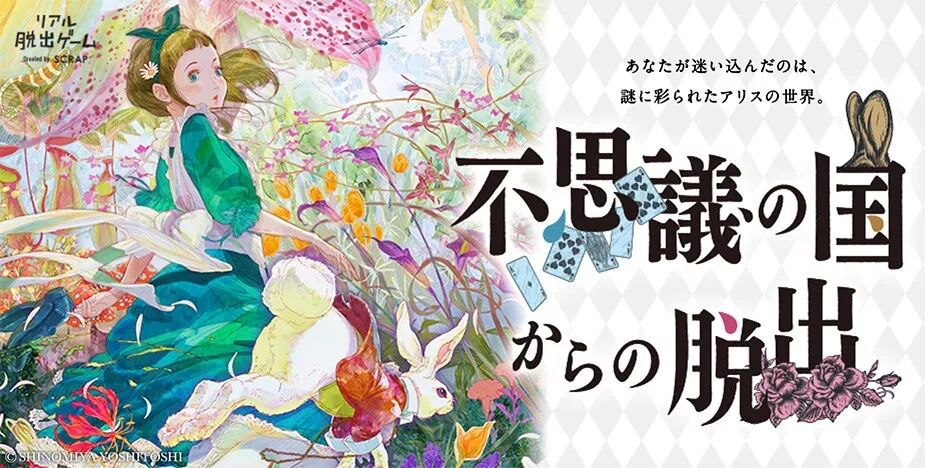 以《爱丽丝梦游仙境》为舞台展开的真人逃脱游戏。拿着特殊的解谜道具,追寻在美术馆门口消失的白兔,一边解谜一边寻找出口。和普通的真人逃脱游戏不同的是,会场同时有爱丽丝梦游仙境的展览,可以一边欣赏展览一边解谜哦。