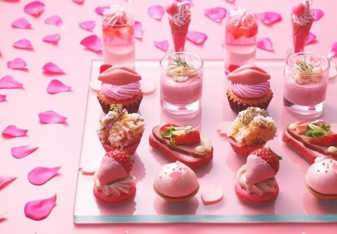 春天是草莓的季节,空气中都弥漫着草莓甜甜的味道。以“住在纽约的女孩子”为主题的甜点自助,一眼望去都是粉色,满满的少女心。甜点也是以草莓为主,有粉色的小裙子蛋糕、樱花蛋糕卷、草莓巧克力蛋挞等。喜爱草莓的小伙伴别错过啦。