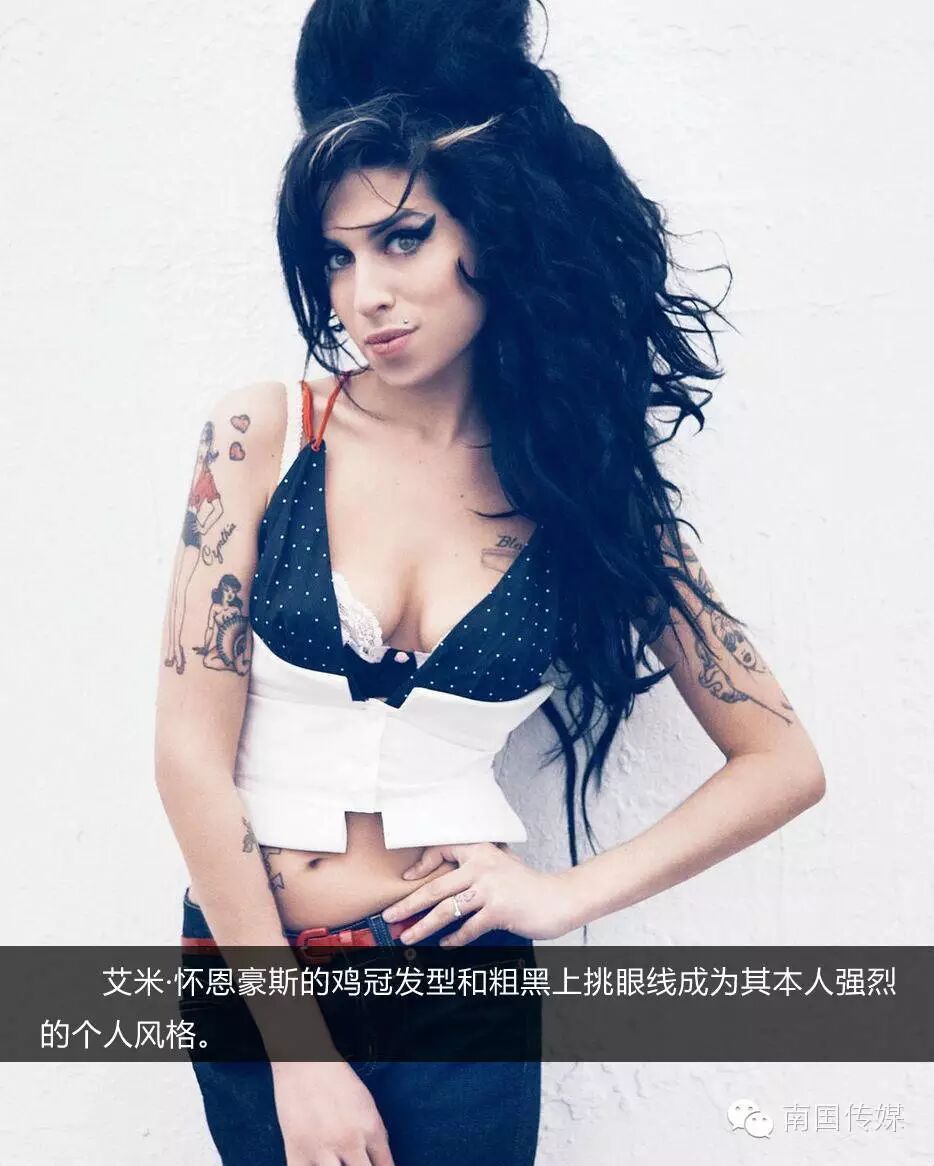 夸张的黑色眼妆和蜂窝头是Amy的标志