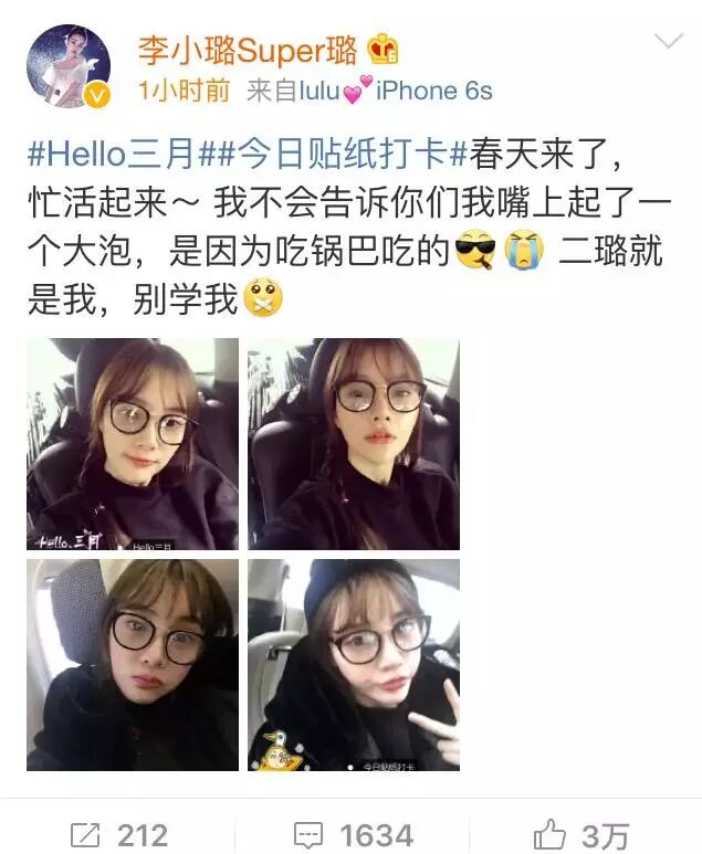 1日中午,李小璐自曝嘴上起泡,原因居然是吃了太多锅巴所致……让网友哭笑不得。