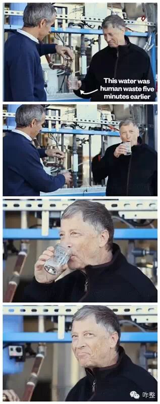 据外媒报道,一直热衷于慈善活动的微软创办人比尔•盖茨于当地时间5日公布了一段视频,视频中他介绍了一种机器能将人的排泄物过滤后净化成饮用水。接着,他接了一杯循环后的液体,犹豫了一下,喝了一口后,随之露出笑容说道:“味道并不比任何瓶装水差”。过后还在博客上写道,“我看见几坨粪便被送上传送带,最后掉进一个容器内。它们在机器内受到处理,被加热至沸腾。几分钟后,我喝上最终产品:一杯味道不错的饮用水”。