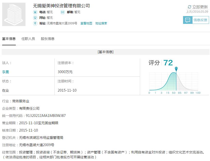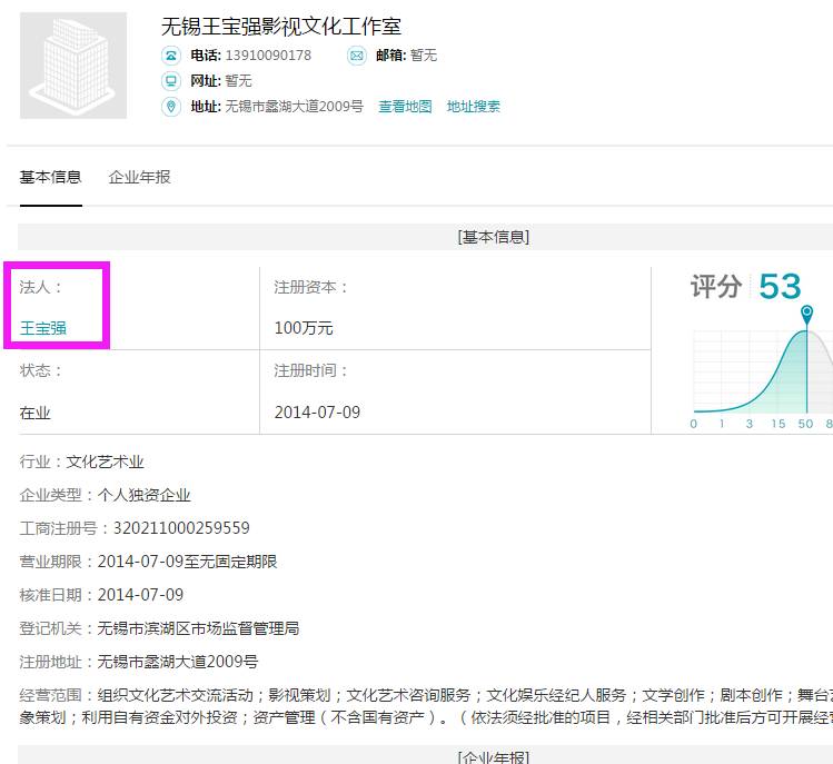 范冰冰的爱美神公司的注册地址在无锡“蠡湖大道2009号”,也就是我们熟知的华莱坞。