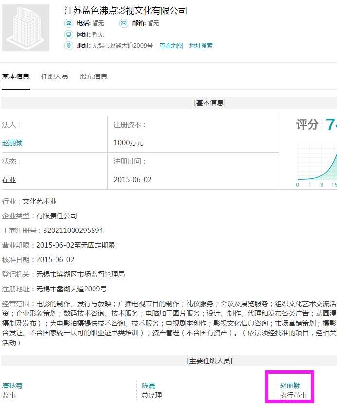 此外,刘诗诗、赵丽颖也是该公司的股东