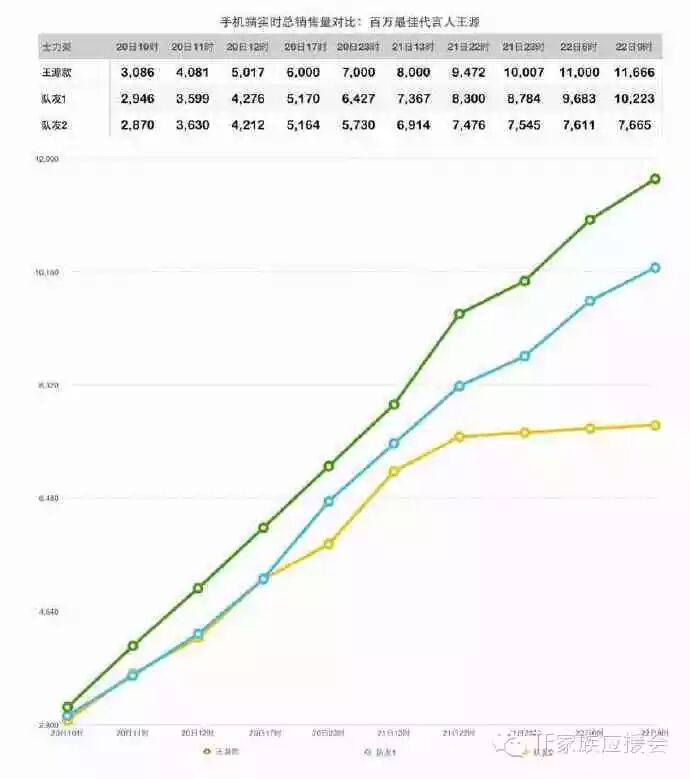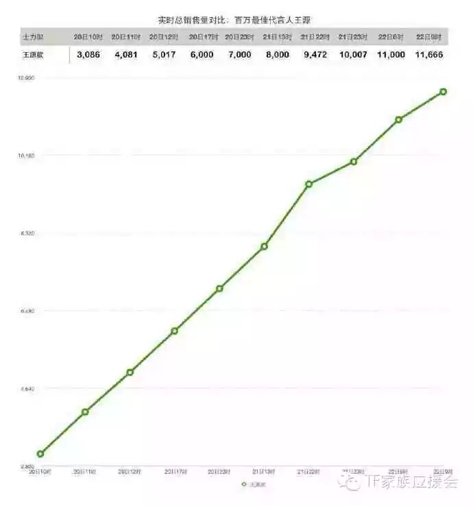 让我们来看看在小汤圆们保存实力随便买买的情况下,王源单人款士力架的实时销售数据,以及和队友的对比图。