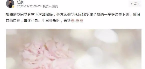 知名女演员任泉2022年2月27号上午 09:05·,在其个人社交平台发文称: