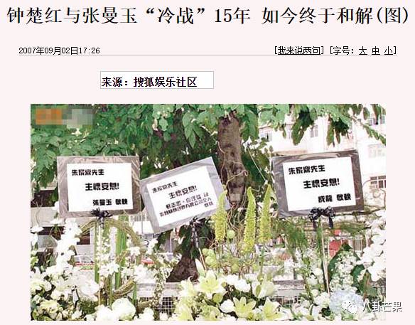 后来真的和好了,和身边人的讲和有关系,也和自己心境变化有关系。2007年钟楚红的丈夫朱家鼎去世,张曼玉送大花圈。和人生大悲比起来,那些小恩怨实在算不了什么。