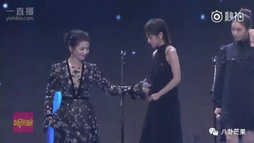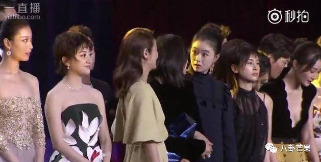 从高台上下来后,台上分成三块:蒋欣,刘涛王子文,乔欣杨紫。