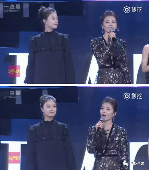 一年前同台,她们是这样的,不但互看,眼神里都是爱。