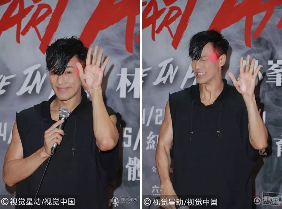 在演出结束后的庆功宴上,林峯还给媒体展示手上的伤口。