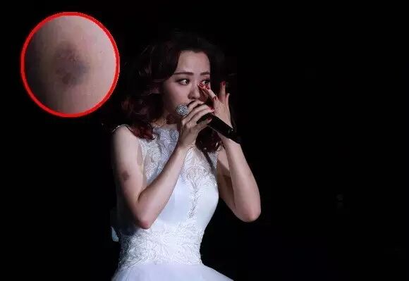 然而张靓颖却在紧急处理后再次回到舞台继续演唱,从大屏幕的特写中能够清晰地看到她手臂的淤青。随后的几首歌,张靓颖都坐在凳子上坚持完成。