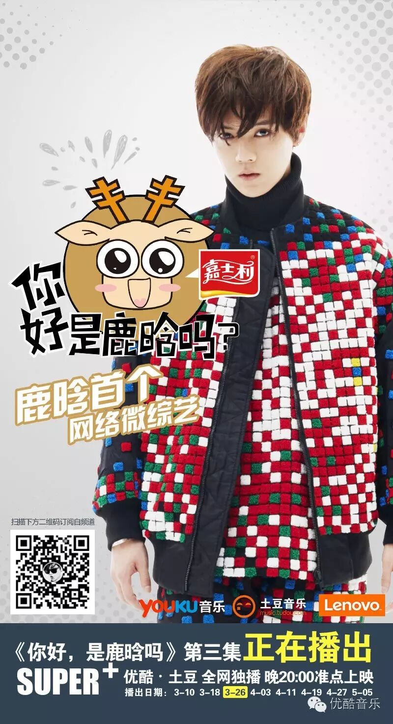 给敬业鹿一个大赞的同时,优酷·土豆正在全网独家播出《你好,是鹿晗吗》第三集哦~福利嘛