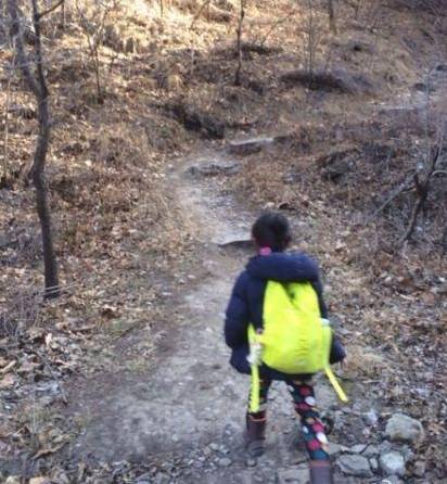 那是我们的第一次,设定的一个目标必须达到。然后一转眼四年以后,到她五岁的时候我们再去灵山,从山脚下到山顶往返大概17公里的路程,她可以独立不需要搀扶,可以从山脚下完成整个行程,用时七八个小时。甚至我们要求她把所有的水到山顶全部喝完,下山是没有水喝的,她能学会分配她的体力。