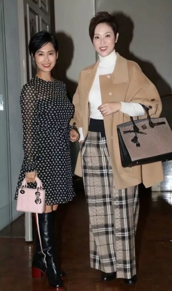 短发真的是非常的适合陈法蓉的,显得人看起来非常的有气场。她穿了一件棕色的外套,非常的有个性,搭配一条格子的裤子就很时髦了啊,而且站在朱茵旁边一点没有被压下去了。