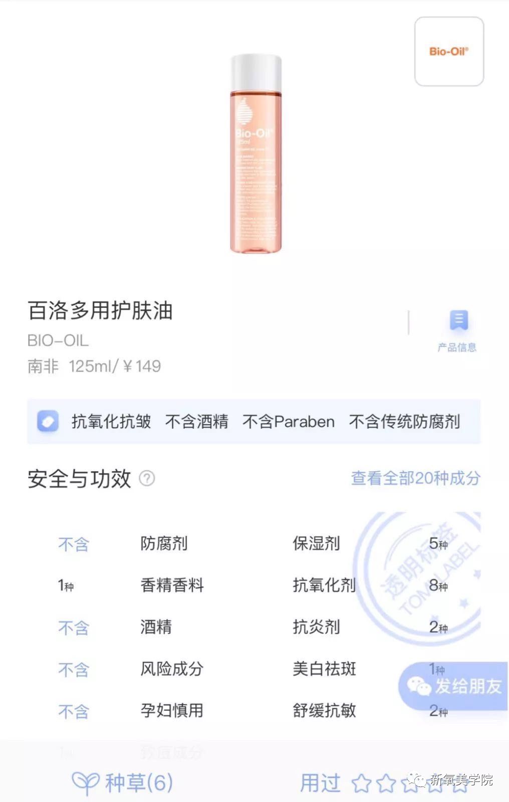 百洛油在预防改善妊娠纹等身体扩张纹、淡化肥胖纹、修复疤痕、痘印方面都有着突出功效,并且通过了欧洲化妆品议会和理事会的安全评估,敏感肤质与孕妇婴幼儿都能使用。