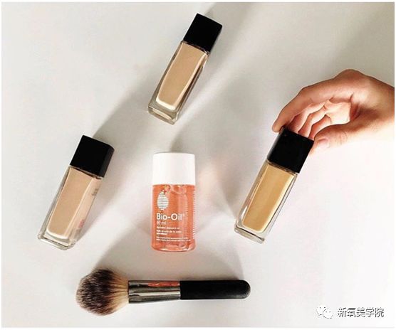 很多美妆达人也将其与高光混搭使用。直接用刷子取高光粉很容易脱妆,而在刷子上滴两滴百洛油再取粉,高光会更上色,也更服帖,整体的妆感也更有质感。