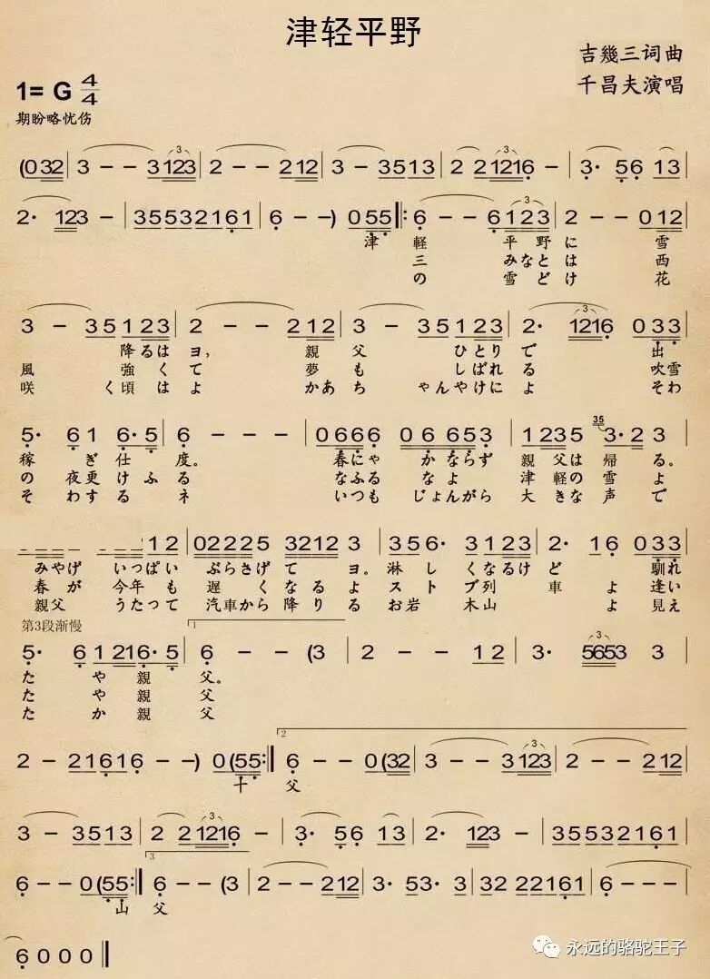 千昌夫,本名阿部健太郎,1947年生于日本东北六县之一的岩手县陆前高田市。高中时期便远赴东京,投到作曲家远藤实门下学习。1965年出道歌坛,1966年发表的《星影のワルツ》成为热门歌曲,开始受人瞩目。1968年初登红白歌会。以后发表的《夕焼け云》、《北国之春》、《望乡酒场》、《津轻平野》等歌曲均风靡一时。