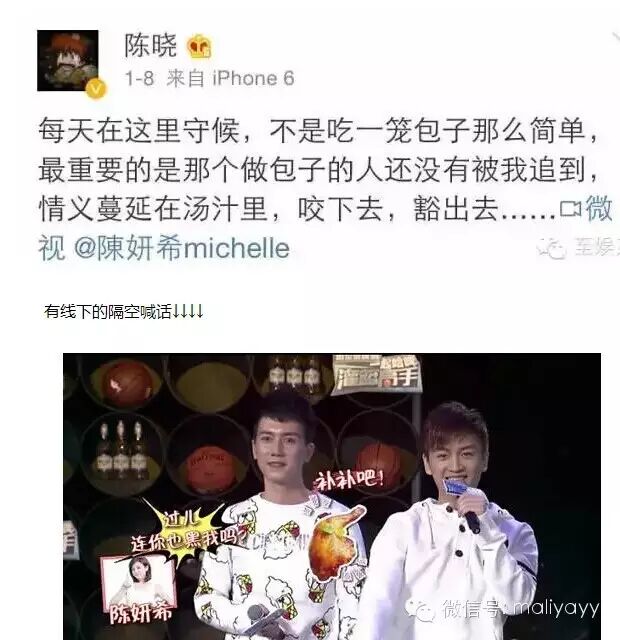 在综艺节目中,心系姑姑的陈晓依然不忘记多次提起陈妍希,除了大方赞扬陈妍希乐观可爱,陈晓也不忘“黑”姑姑一下,竟然隔空喊话,挑逗陈妍希“吃个鸡腿吧!”