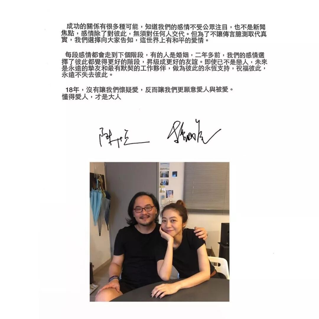 二是今年五月,她与相恋18年的御用吉他手钟成虎分手,以双签名的形式,亲手为这段故事划上句号,并罕有地登上了热搜这种仿佛不会跟她沾边的low东西;