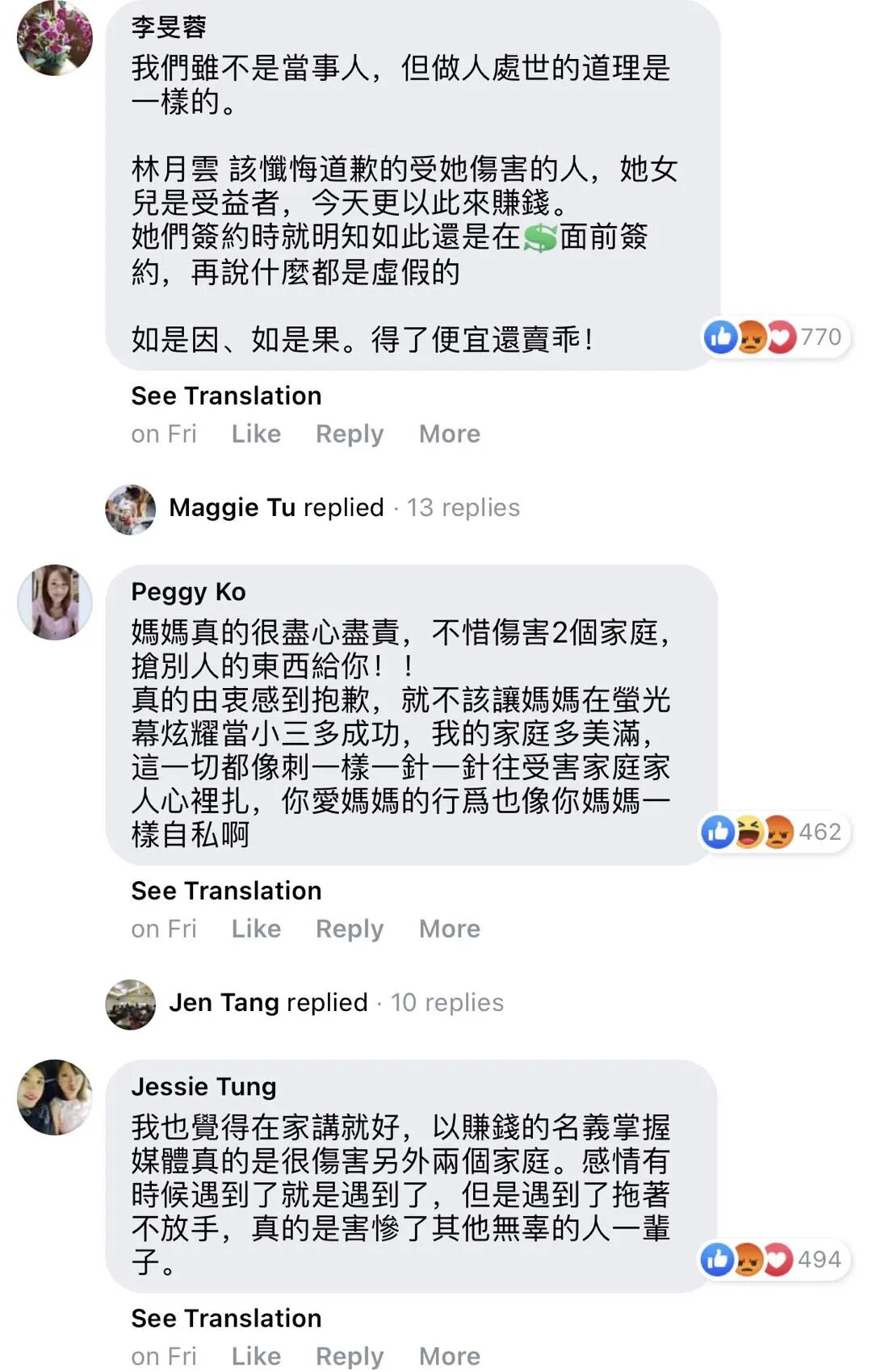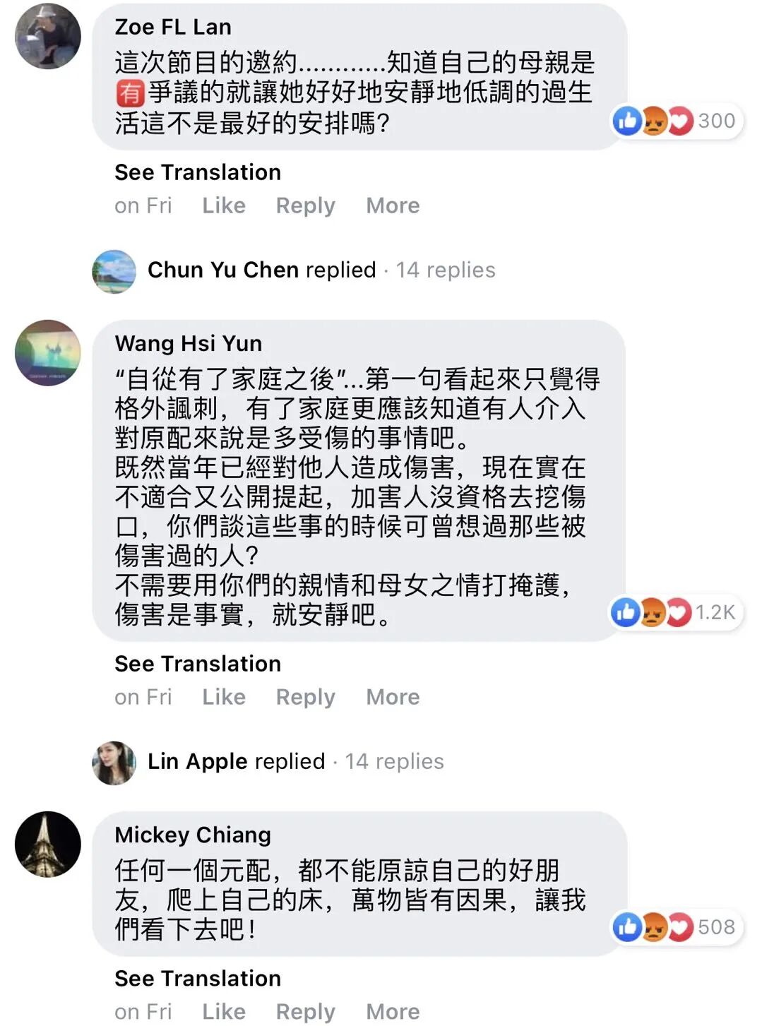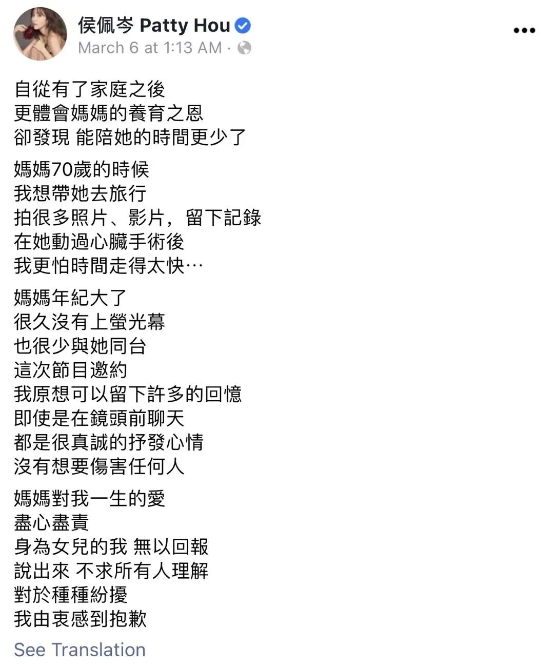 前天,侯佩岑扛不住舆论压力,发了条facebook,意思是自己只是心疼妈妈,没有想要伤害其他任何人。