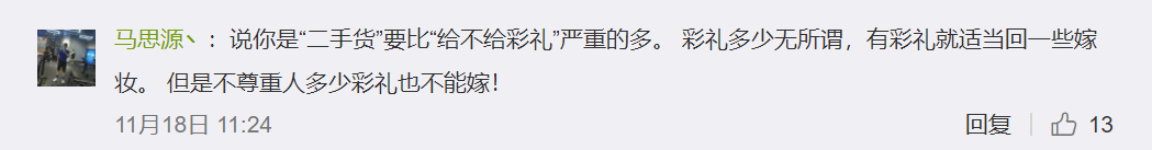 她又难过,又困惑:“难道二婚就不配要彩礼了吗?”
