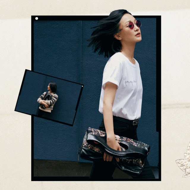剪了短发后越发潇洒的宋茜,诠释它时和周迅一样是白tee装扮,但她手中的31手袋是深蓝手柄+斜纹软呢的编织款,比起皮质少了几分凌厉,多了不少柔软。