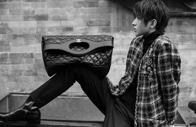 蔡徐坤示范了套装西裤的“精致”和白衣球鞋的“清爽”,31手袋在其中都不突兀。甚至男士们可以把黑色大号用来当做日常的公文包,也有一种严谨中的时髦。