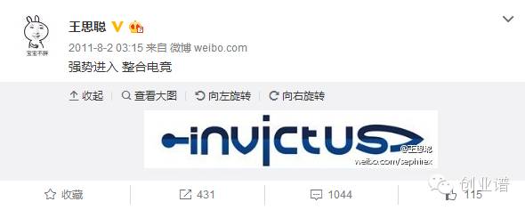 其实,他在电竞领域的布局,早在4年前,就已经开始了……2011年8月,他发微博表示:“强势进入,整合电竞。”