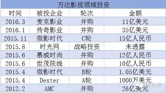 如今很会玩的万达,以26亿美元并购的AMC娱乐是美国第二大院线,创下了彼时中国买家并购美国企业的最大规模纪录,最近AMC娱乐投资的其竞争对手麦克影业,是电影放映行业的世界领导者;以1000万美元投资A轮的是亚洲地区最著名及领先的电影特效公司之一;以22.46亿元并购的Hoyts是澳洲第二大院线公司。此外,万达已经在2015年以6.5亿美元并购美国世界铁人公司(WTC)100%股权。