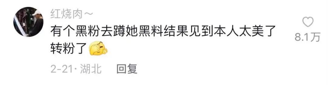 即便颜值这般,也被盖章认证是团队里最不上镜的,但凡在现场见过本人的,都表达过对她美貌的E震惊。不是有网友调侃吗?有黑粉去现场蹲她黑料的时候,看到她本人,美到直接黑转粉▼