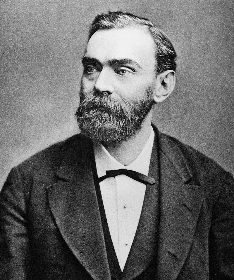 阿尔弗雷德·贝恩哈德·诺贝尔,瑞典化学家、工程师、发明家、军工装备制造商和炸药的发明者,1833年10月21日出生于斯德哥尔摩,1896年12月10日逝世。诺贝尔一生拥有355项专利发明,并在欧美等五大洲20个国家开设了约100家公司和工厂,积累了巨额财富。1895年,诺贝尔立嘱将其遗产的大部分(约920万美元)作为基金,将每年所得利息分为5份,设立诺贝尔奖,分为物理学奖、化学奖、生理学或医学奖、文学奖及和平奖5种奖金(1969年瑞典银行增设经济学奖),授予世界各国在这些领域对人类作出重大贡献的人。 为了纪念诺贝尔做出的贡献,人造元素锘(Nobelium)以诺贝尔命名