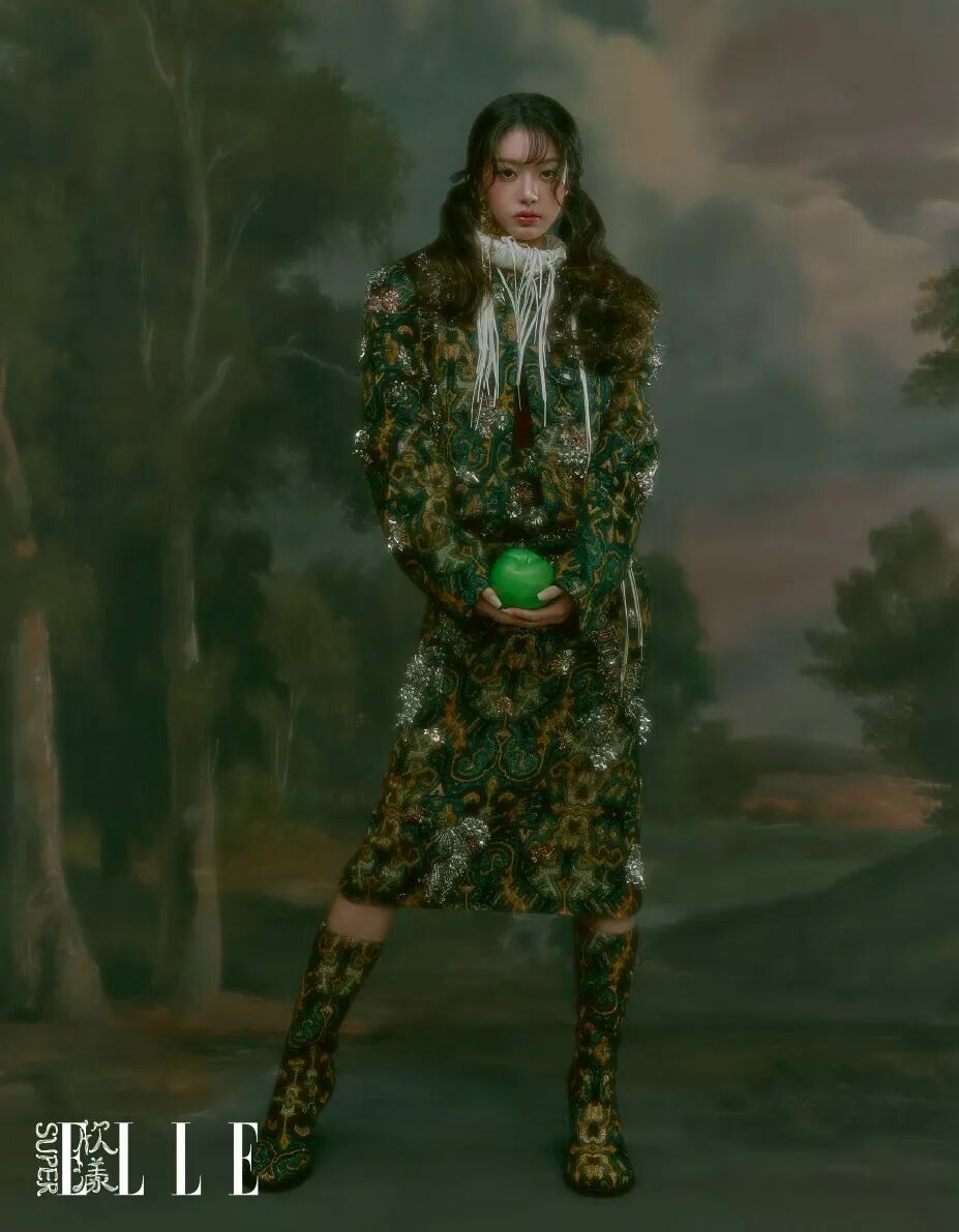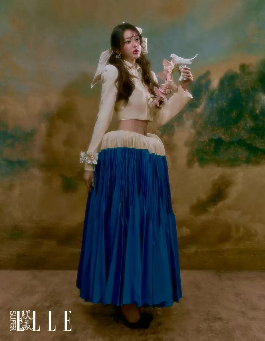 今年年初,员瑛和同伴们一起推出了IVE的第三张EP,新专辑《IVE EMPATHY》如同一面棱镜,折射出IVE愈发璀璨的光芒。“它充满了‘自信’的感觉,”员瑛的声音带着不容置疑的笃定,“很好地展现了我们独特的风格。”当被问及专辑中最喜欢的歌曲,她毫不犹豫地选择了《You Wanna Cry》,这首歌在轻盈的旋律中蕴含着独特力量,现代摇滚风格的鼓点与丰富的音效使其更为饱满,而与之形成鲜明对比的轻柔原声吉他,则为歌曲增添了温柔细腻的色彩。