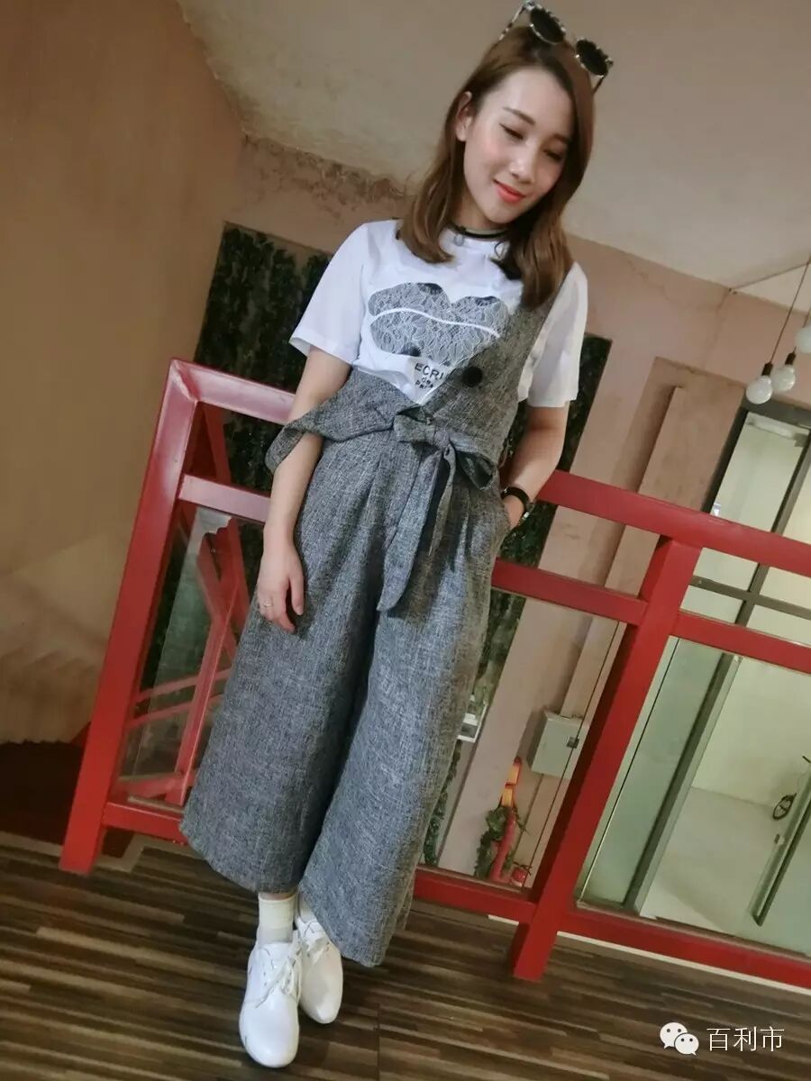 而T恤的百搭性是我们不可想象的,搭配可爱的背带阔腿裤,俏皮活泼。