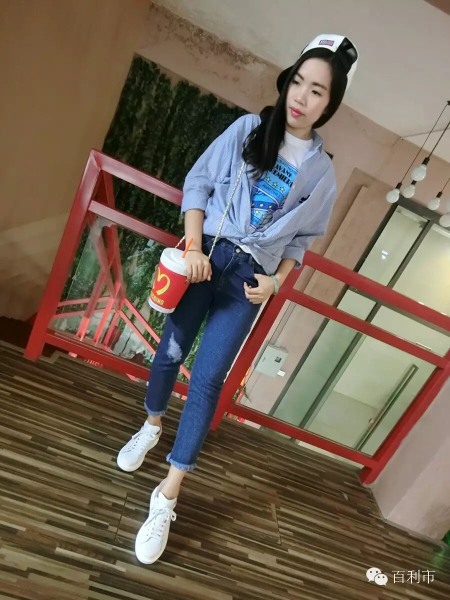 帅气慵懒的条纹衬衫,用T恤做内搭,再把衬衫随意的角打结,就能酷帅随意。