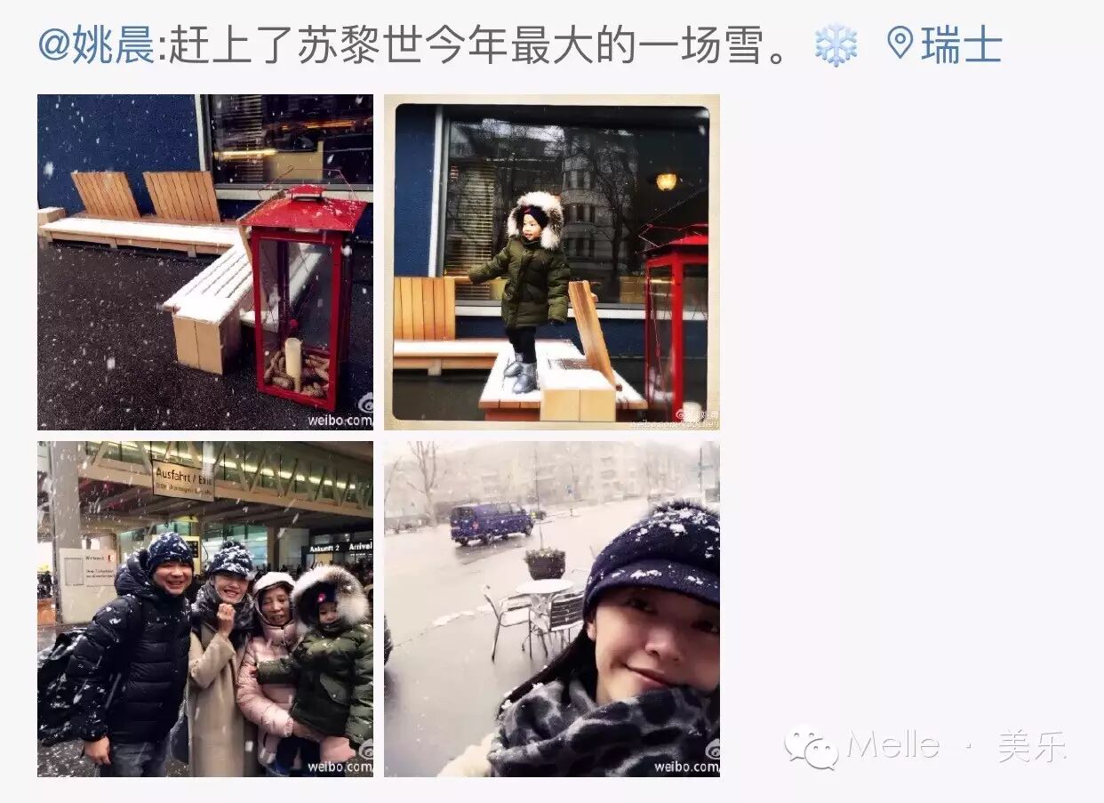 除了在瑞士达沃斯领奖之外,姚晨在瑞士留下了美好的印记。她在微博表示赶上了瑞士苏黎世最大的一场雪,家庭合照十分温馨。