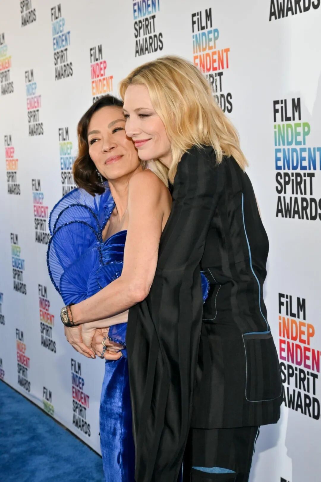 北京时间今天上午,第38届独立精神奖(The 38th Independent Spirit Awards)举行。杨紫琼凭借《Everything Everywhere All at Once》击败竞争对手 Cate Blanchett(凯特·布兰切特)等九位男女演员,获得“最佳主角奖”。 独立精神奖的“最佳主角奖”取消了性别设定,男女演员同时提名,一起角逐一个奖项,所以含金量颇高,最终杨紫琼获胜,也让大家期待最终3月12日举办的奥斯卡影后的大奖花落谁家。但夺走了彼此的获奖机会,一点也没有影响杨紫琼跟 Cate Blanchett 的情感,两人在红毯上拥抱合影,疑似回应“拉情深”的传闻,成为最新姬圈CP。这种照片真的很难不怀疑,传闻是真的。 在金球奖的时候,两人又同时封后,杨紫琼成为了喜剧影后,Cate Blanchett 成为了剧情类影后,两人顶峰相见,各分天下。Cate 和杨紫琼马上就要在奥斯卡大决战了,谁能拿下今年的奥斯卡影后都是未知数,所以已经很期待一些相爱相杀的场面了!还是期待本月12日的奥斯卡,一年一度的盛事。 今年大肚婆 Rihanna 也会在现场表演《Lift Me Up (From Black Panther: Wakanda Forever - Music From and Inspired By)》带来这首歌曲的第一次的现场(可能也是最后一次),她将挺着大肚子惊艳亮相,呼吁全美女性积极怀孕,为国生娃。
