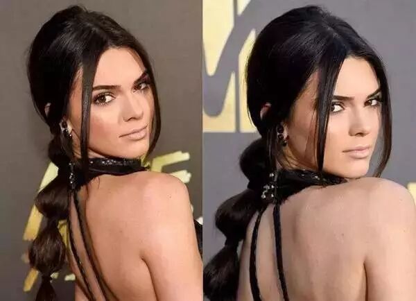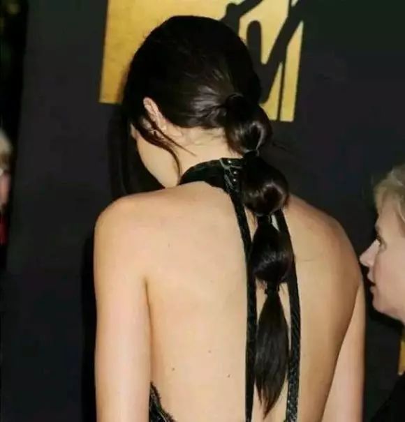 这款葡萄串发型最开始也是由超模肯豆带火起来的,先梳好一个马尾然后用皮筋把头发分成一段一段形成一个个小鼓包,所以因此得名“葡萄串马尾”。