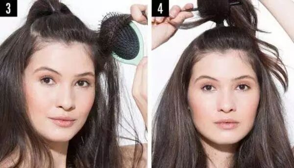 Step4:调整马尾的位置到头顶的正上方,把马尾微微扯松,留一些碎发修饰额头即可。
