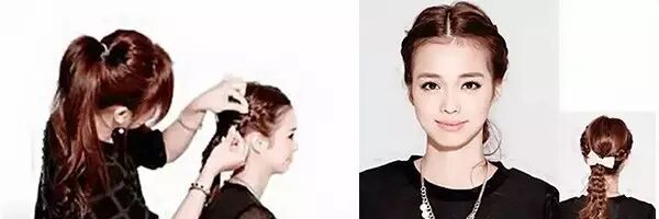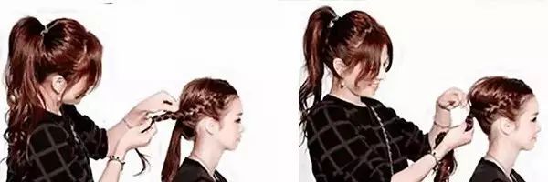 Step2:接着把后半段以三股辫的形式编完,然后可以选择把侧面的两股或者三股合成一个小马尾。