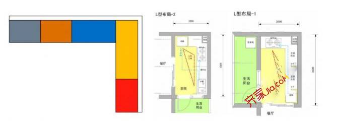 L型:最为常见的一种。长方形厨房较适合设计成“L”型橱柜,空间利用率高