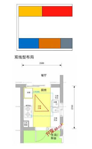 双线并型:局双线型“通道式”厨房,适合设计成双线型橱柜,同样布局合理