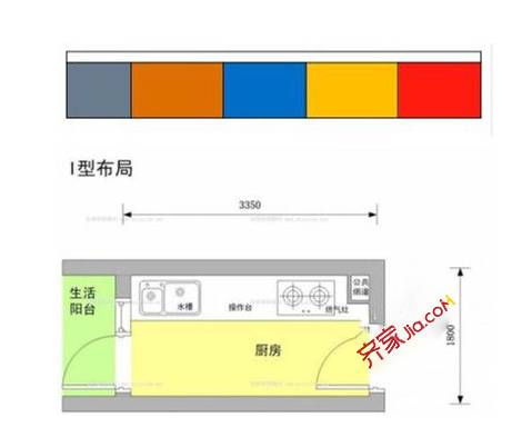 I字型:I型布局适合面积偏小,空间狭长的厨房。