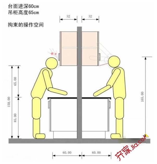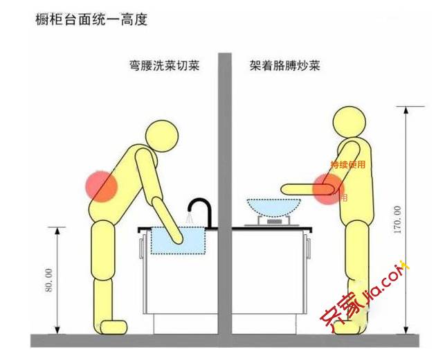 人的使用习惯决定了橱柜和操作台面的高度!(可根据自己家人的身高稍有调整)