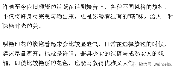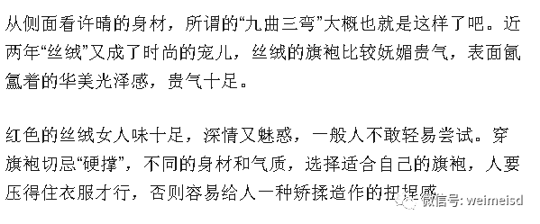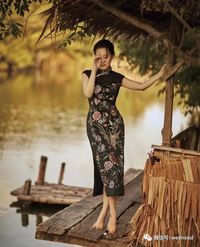 如果不知道选择什么颜色的旗袍,黑色总是不会错的,不过像许晴这身刺绣铺满全身、古典精致的旗袍,不太适合日常穿。加以时尚剪裁的设计的线条,简约利落,将许晴包裹的曼妙婀娜,看着就像是“花瓶”般的身材,让人不服不行。