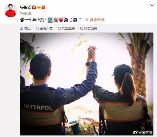 今天是张智霖与袁咏仪结婚17年的纪念日,俩人在微博晒出两人一起在大马共庆纪念日的照片,照片中的两人双手紧握,这个小细节可以看出两人意欲风雨同舟,不离不弃,给了彼此足够的安全感。